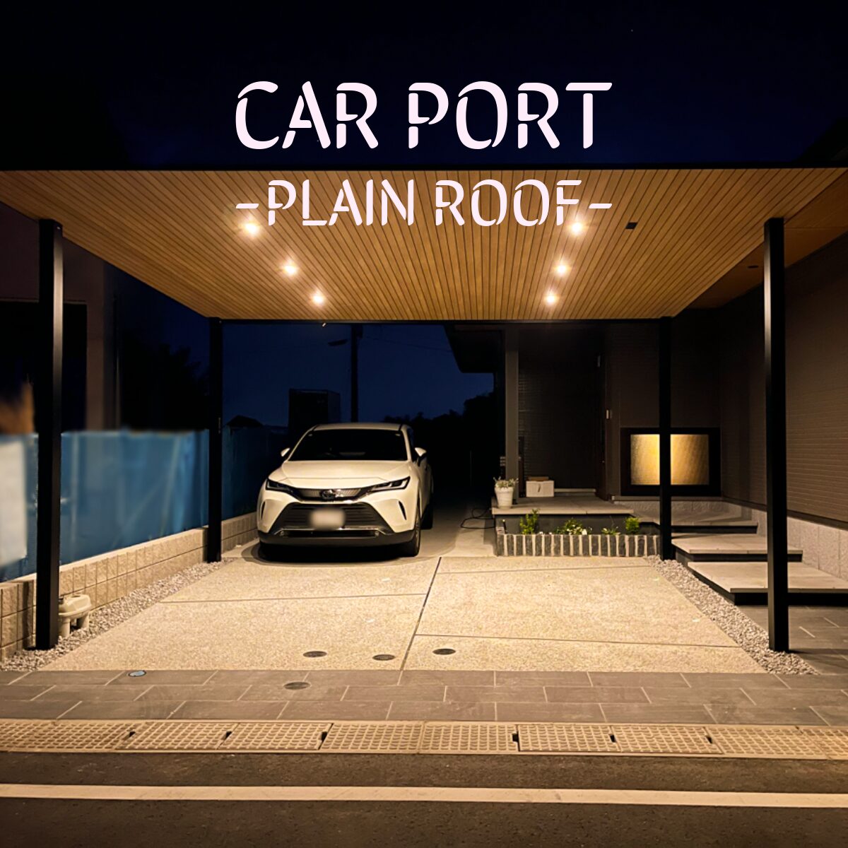 2025-08-02 お知らせブログ YKKのプレーンルーフ2台用 施工事例✨ 今回はダウンライトを取り付けました✨ 照明がつくことで、夜の駐車も安心!おうちの雰囲気も上がります! また、人感センサーを取り付けているためおうち自体の防犯性能がUP↑↑↑