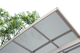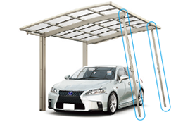 | 屋根材 | ポリカーボネイト板(クリアブラウン・クリアブルー・クリアマットG)熱線吸収ポリカ(ブルーマットS・クリアマットS)・熱線遮断(ミストグレーS) |