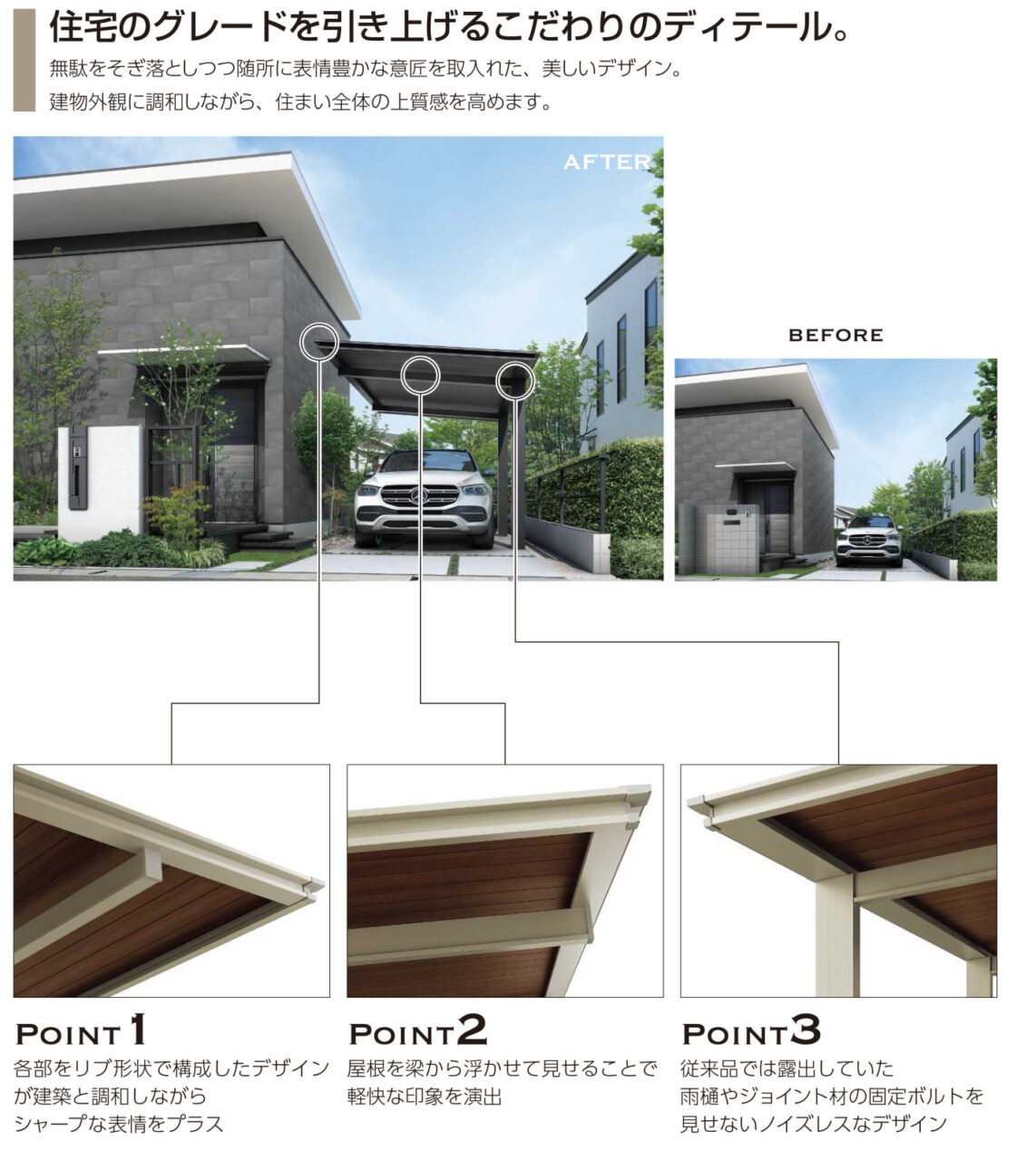 外構シリーズ「ルシアス」のアイテムの一つとして、生まれた「ルシアスカーポート」