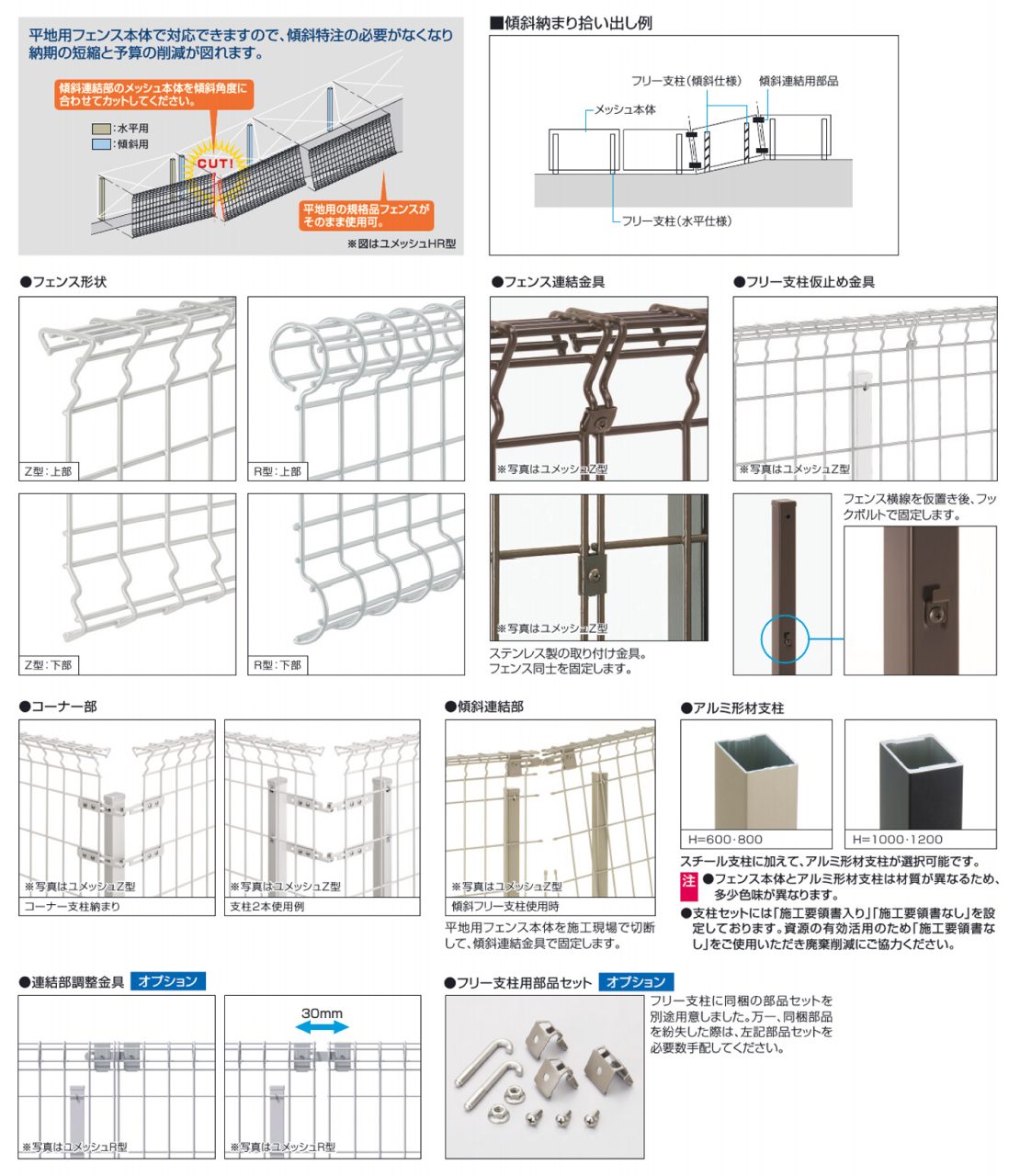ユメッシュZ型・R型(フリー支柱タイプ・傾斜用フリー支柱タイプ)