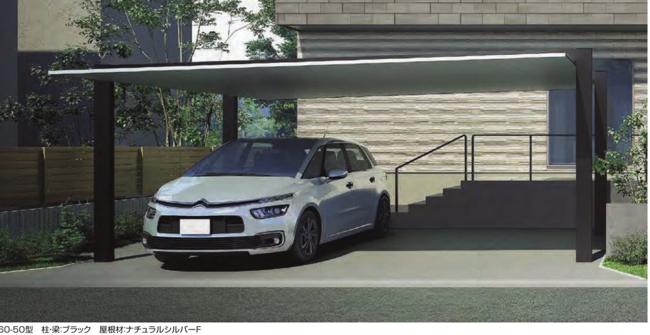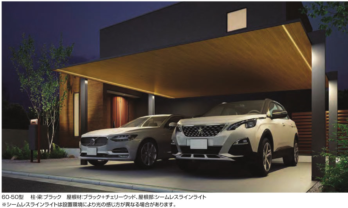 カーポート カーポートSC 1500 2台用 定価1,255,900円(税別)地域限定最安値ASK 幅(W)×奥行(L)4,866×5,000柱・カラーの種類シャイングレーF・ブラック・ナチュラルシルバーF・ダスクグレー屋根材カラーの種類シャイングレーF・ブラック・ナチュラルシルバーF・ダスクグレー カラーコーディネート 選べる照明