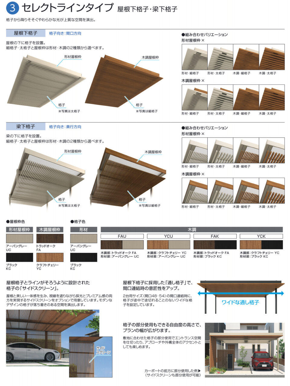 カーポートをベースに家族構成や生活スタイル、敷地条件などに合わせてエントランス空間を柔軟な発想で演出する「U.スタイル アゼスト」。シンプルデザインを追求したスタイリッシュなフォルムや、デザイン性を高める天井材付きの屋根を採用し、スタンダードからラグジュアリーな空間まで幅広いプランを提案します。