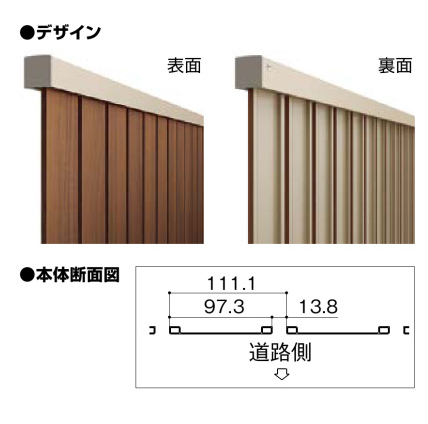 フェンス フェンスAB TS2-K型(片面木調・縦スリット②) 定価29,800円(税別)特価プライス45%OFF地域限定最安値16,400円(税別) 幅(W)2000㎜高さ(H)600・800・1000・1200㎜ カラー デザイン カラーコーディネート