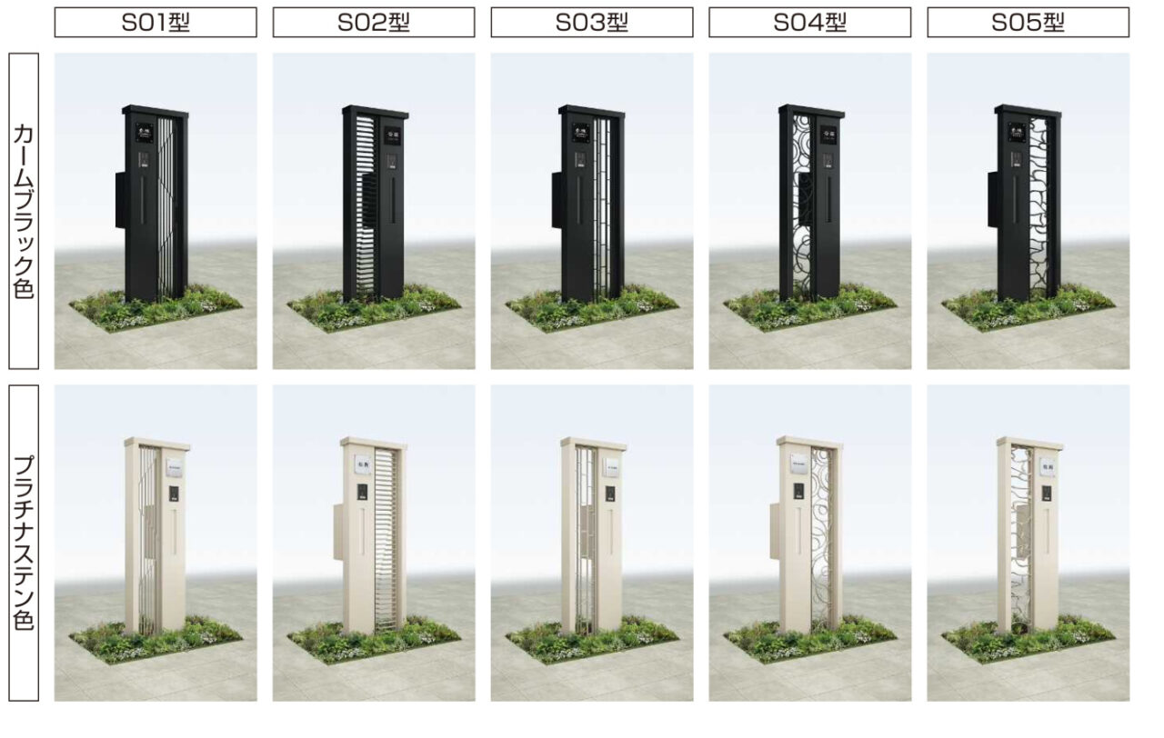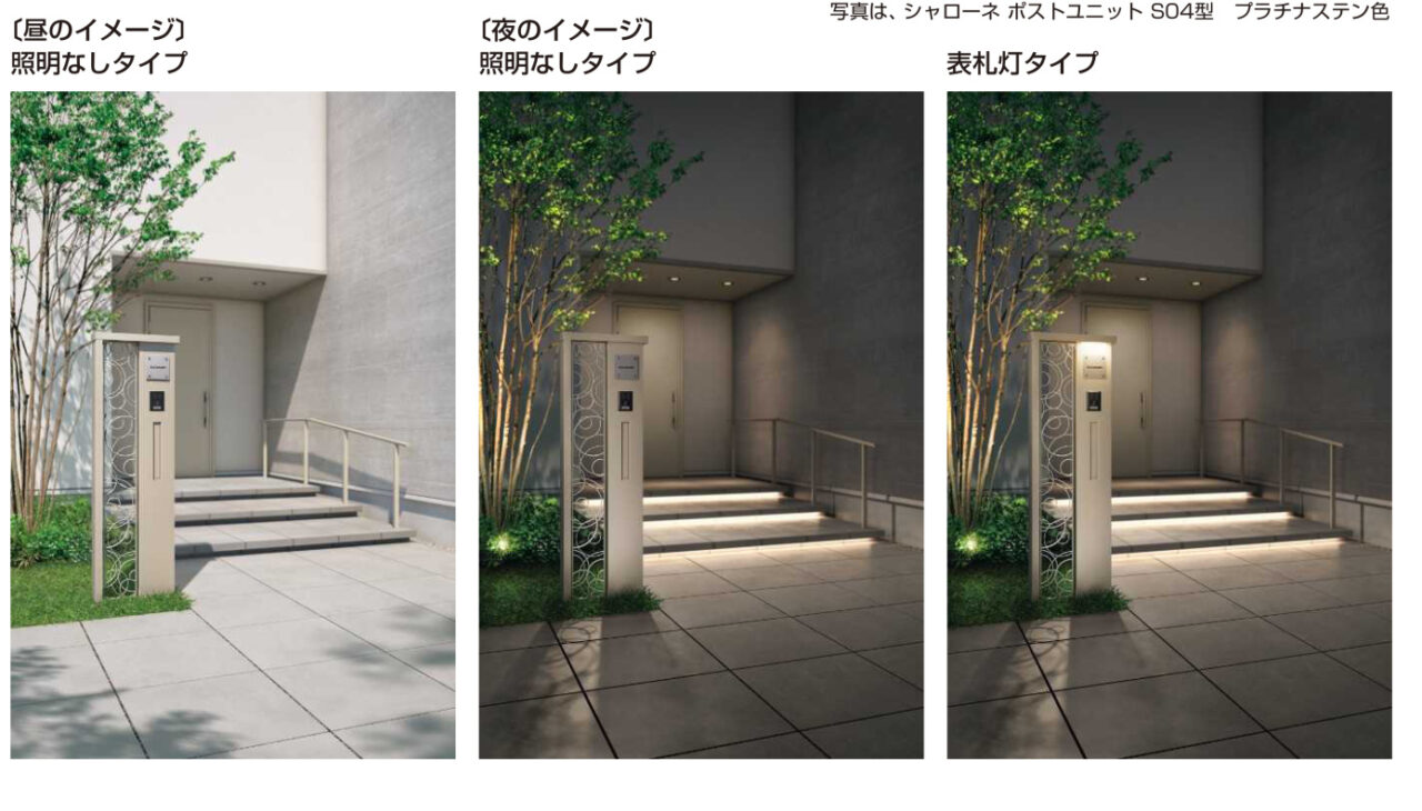 門柱 シャローネ ポストユニットシリーズ 地域限定最安値ASK 景観になじみながらも、住まいの個性を演出する鋳物ポストユニットです。 また、鋳物ならではの造形美が昼夜で変化するラグジュアリーな空間を創造します。 パネル デザインディテール カラーバリエーション オプション明るさセンサー1型