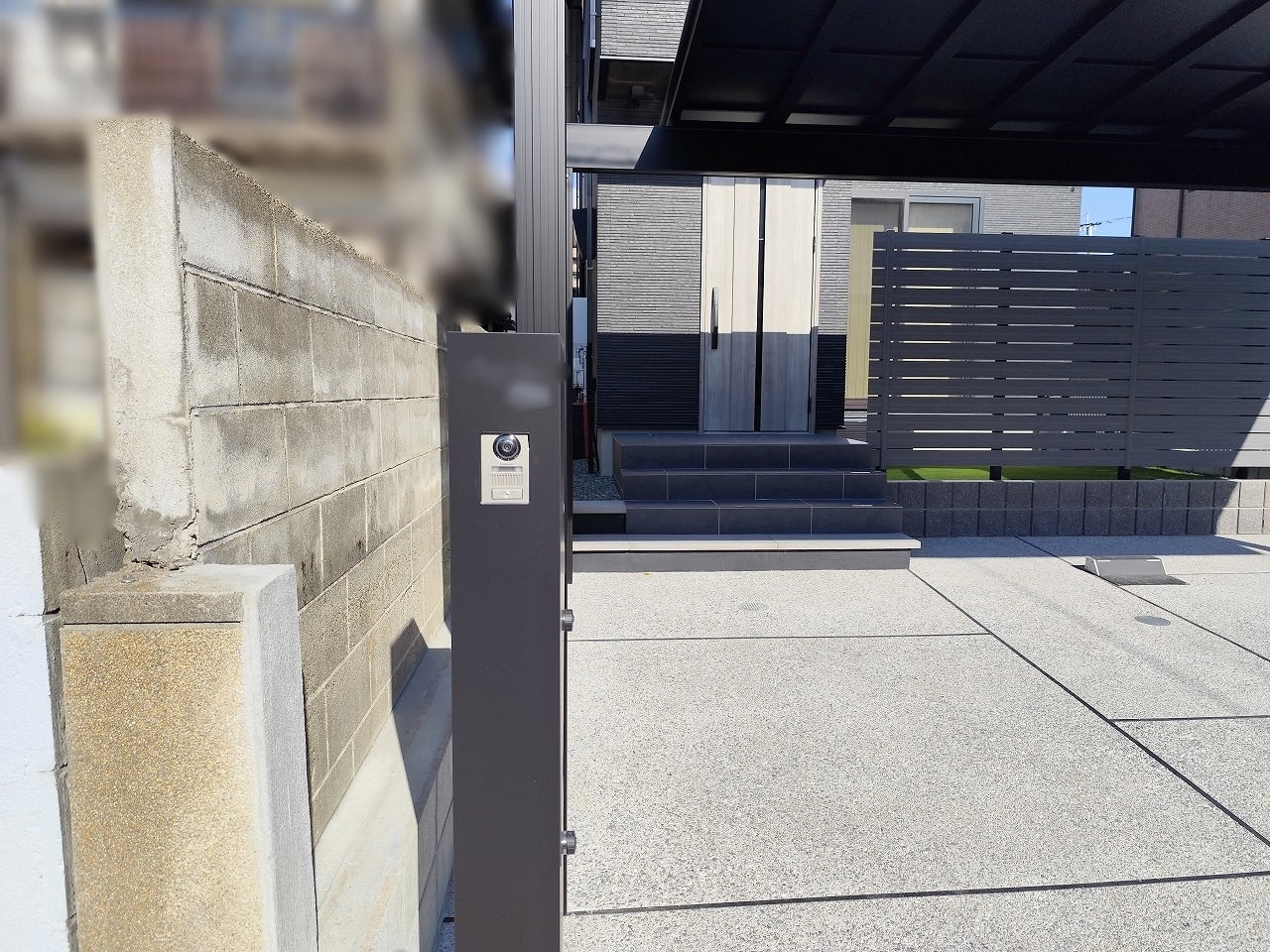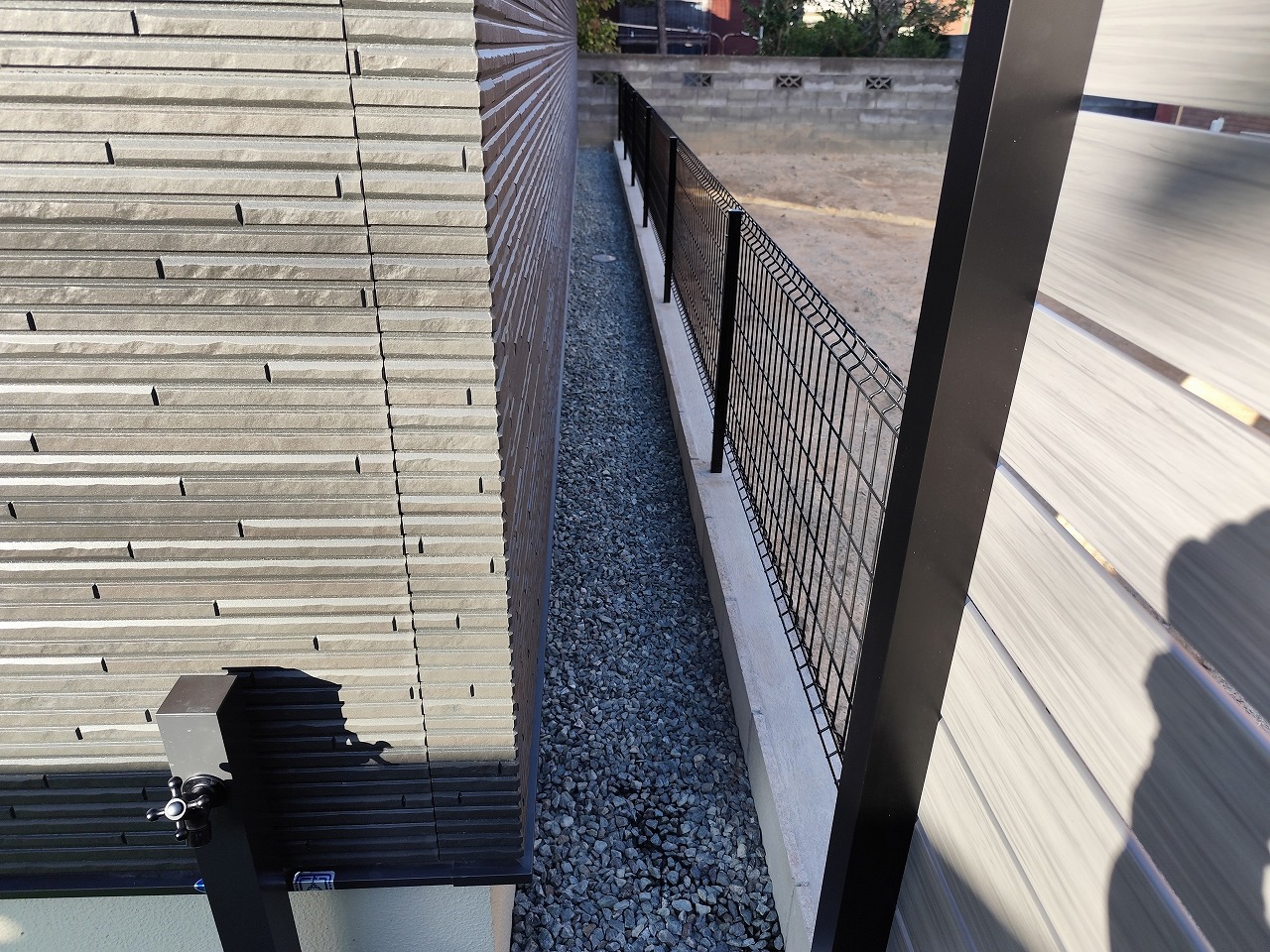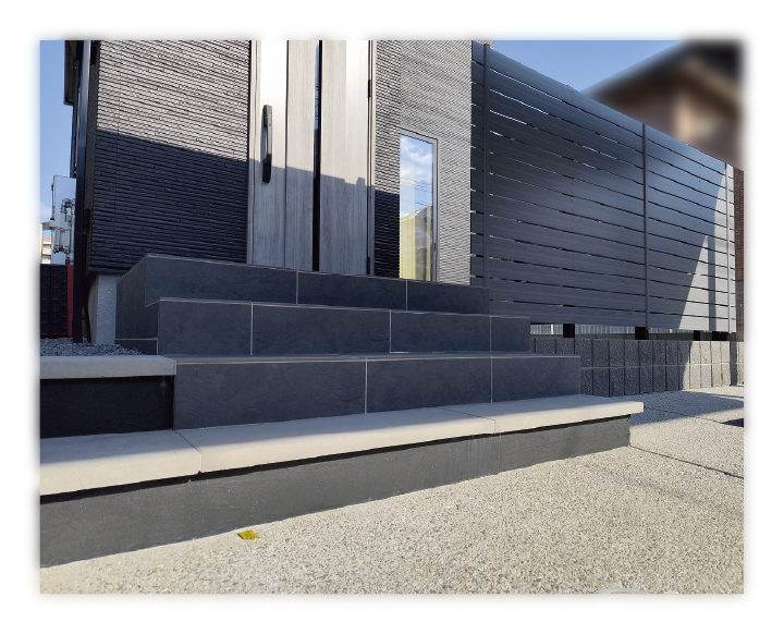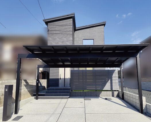 モダンな佇まいの住まいに合わせて、無駄をそぎ落とした直線的なデザインと落ち着いたトーンのエクステリアを採用しました。