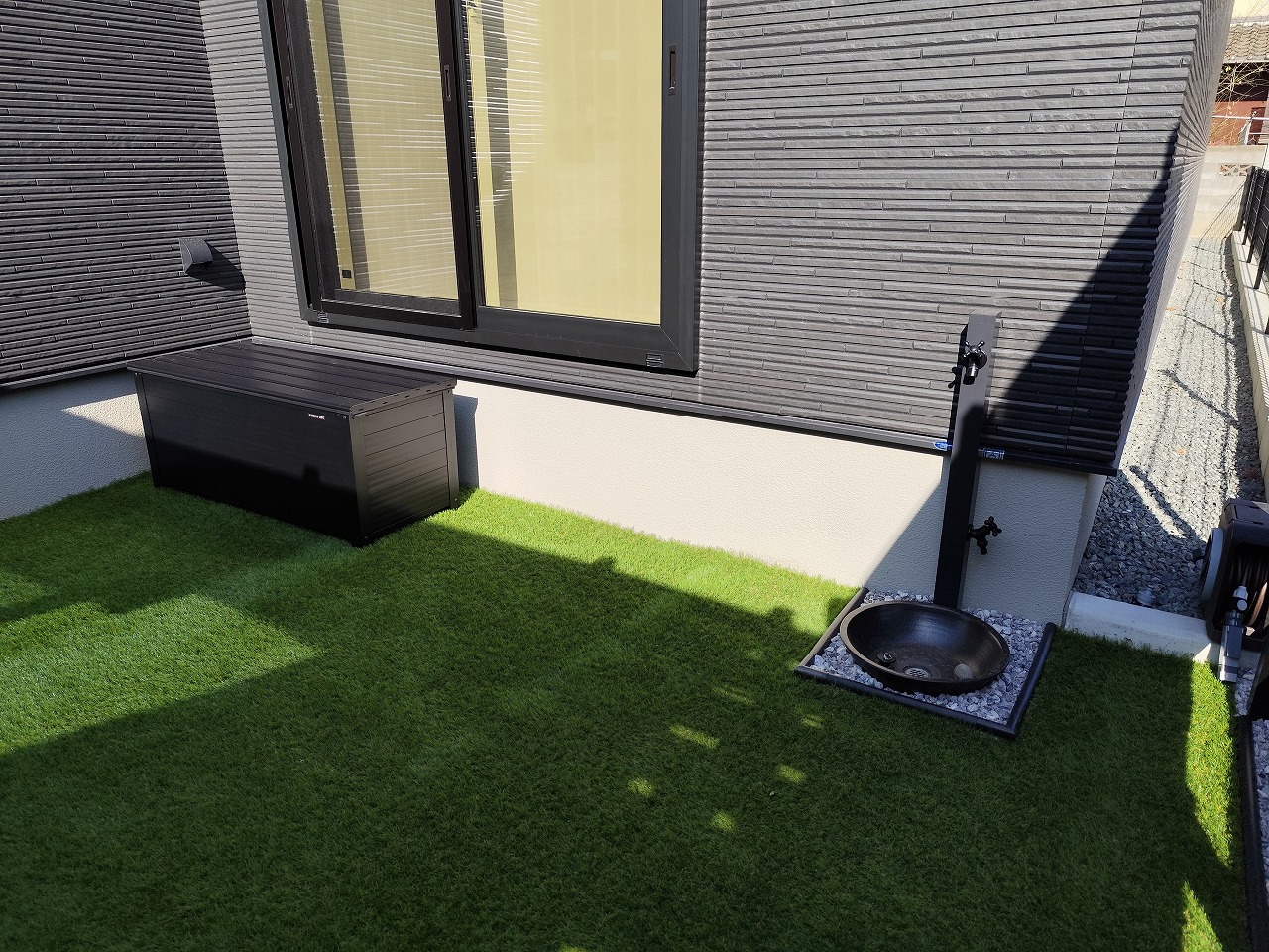 小さなお子様がいらっしゃるので安全面にも配慮し、人工芝を敷いています。